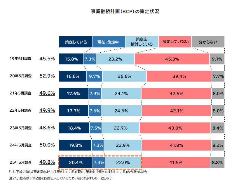 ※出典:2025年6月「事業継続計画(BCP)に対する企業の意識調査(2025年)」株式会社帝国データバンク