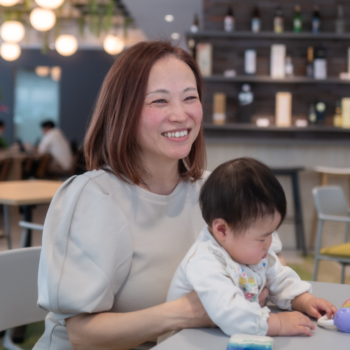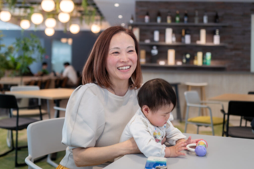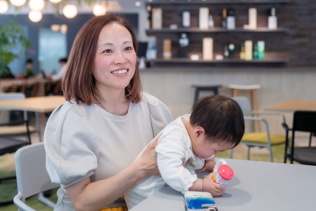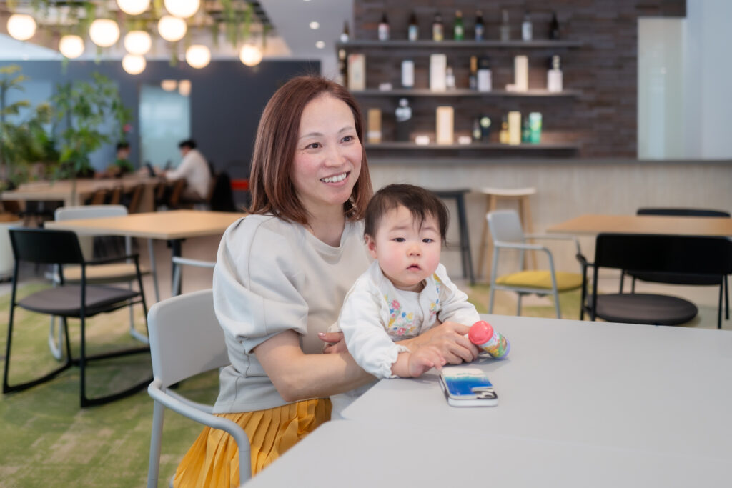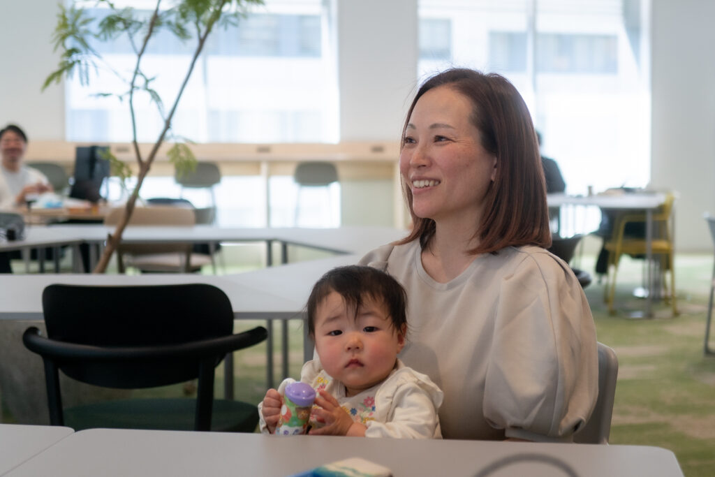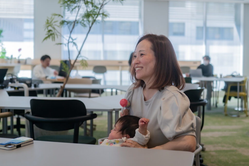 昨夏に第三子を出産。取材当日も子連れワークスタイルで臨んでいただいた。