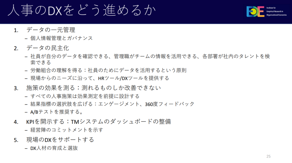 たとえば、「(人事や社内制度の)設計をするためにいろんなデータが必要だから、DX化をして適切なデータを使い、〇〇の制度を作ろう」のようなケースですよね。DX化を進めることで、最適化しやすくなると思います。