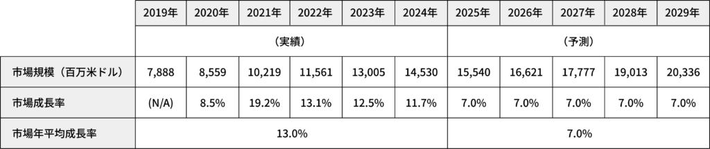 本稿では、HCMアプリケーションの中でもTA(Talent Acquisition:タレントアクイジション)領域のHCMアプリケーション世界市場最新動向を記す。図表1にTA領域のHCMアプリケーション世界市場規模推移を示す。2024年の市場規模は145.3億米ドルで、2024年以前の5年の市場年平均成長率は13.1%であり、2025年以降も年平均7%程度で成長すると見込まれている。